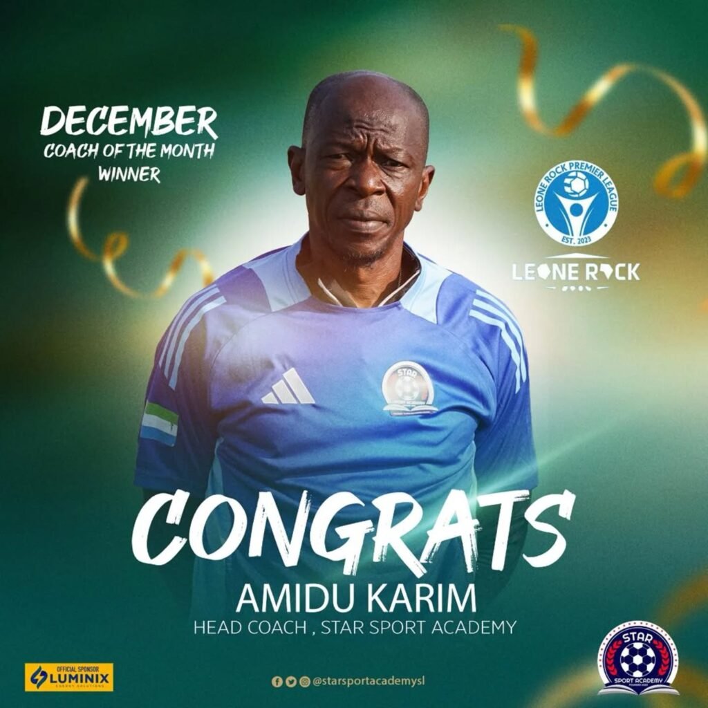 Our head coach, Amidu Karim, has been named December Coach of the Month. Under his supervision, Star Sport Academy has continued its unbeaten streak in ten Leone Rock Premier League matches.