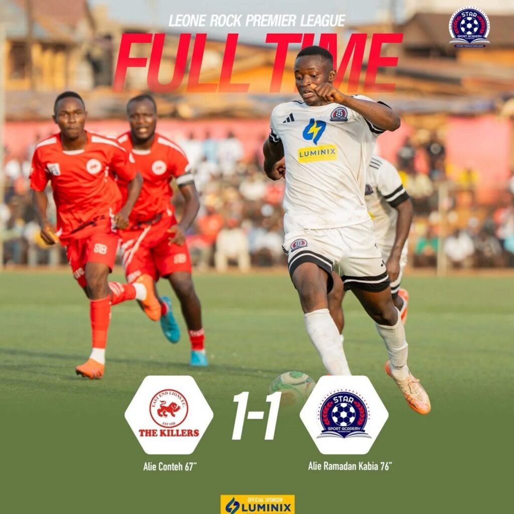 Leone Rock week 24 – Alie Ramadan Kabia found the back of the net to level the score, resulting in a hard-fought draw as we battled against East End Lions. The home side scored first through Alie Conteh in the 67th minute at the Approved School on Sunday.